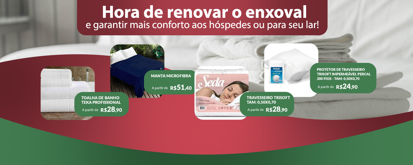 Trabalhamos com a linha profissional de cama, mesa e banho para hoteis, moteis, hospitais